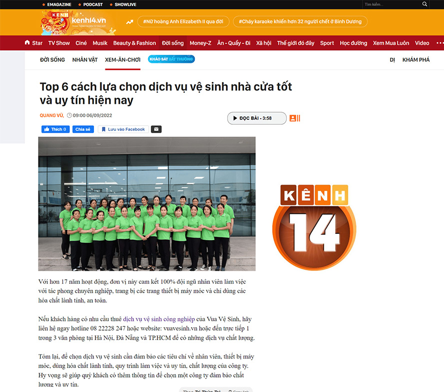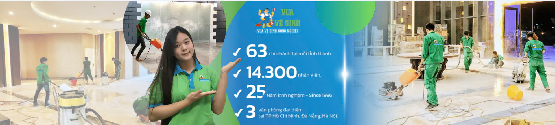 Vua Vệ Sinh thuộc TOP 3 công ty dịch vụ vệ sinh LỚN NHẤT Việt Nam với hơn 17 năm kinh nghiệm ( Since 2005 ). Vua Vệ Sinh cung cấp dịch vụ vệ sinh nhà , vệ sinh định kì ( daily ) , vệ sinh nhà xưởng , vệ sinh tòa nhà … theo công nghệ tiêu chuẩn Châu Âu phủ sóng 63 tỉnh thành Việt Nam,.. Khảo sát nhanh chóng sau 60 phút và hoàn toàn Miễn phí . Chính sách Bảo hành sau vệ sinh , Cam kết 100% sạch đẹp và chất lượng. Với 3 văn Phòng đại diện tại TP.HCM , Đà Nẵng, Hà Nội cùng Hơn 320 nhân viên toàn quốc của chung tôi sẽ cung cấp tới khách hàng dịch vụ chất lượng tốt nhất .